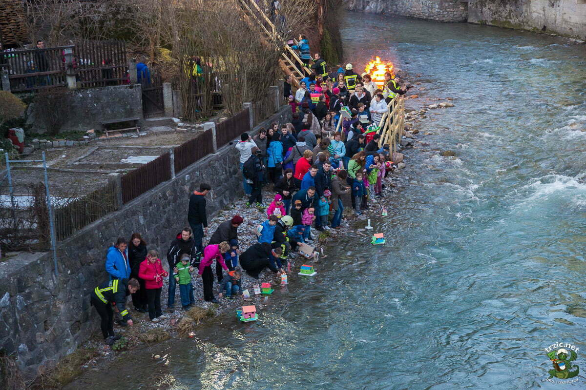 Okoli 17.30 naprej pa se so v atriju Občine Tržič zbirali »gregorčki«. V mraku so v »gregorčkih« zagorele lučke, pot do reke pa so osvetlile bakle. Otroci, starši in vsi ostali so krenili do brega Tržiške Bistrice pri Kulturnem centru Tržič in hiške spustili po vodi ter tako simbolično »vrgli vuč u vodo«. Za posebno vzdušje so s kresom poskrbeli gasilci PGD Tržič, učenci Osnovne šole Križe pa so zavihteli prave goreče brezove metle.