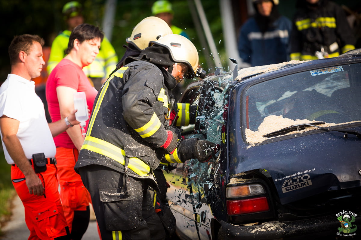 Prikaz reševanja ob rayličnih nesrečah. Sodelovali so PGD Bistrica pri Tržiču, Kinološko društvo Tržič, Policija Tržič, ZD Tržič, GRS Tržič