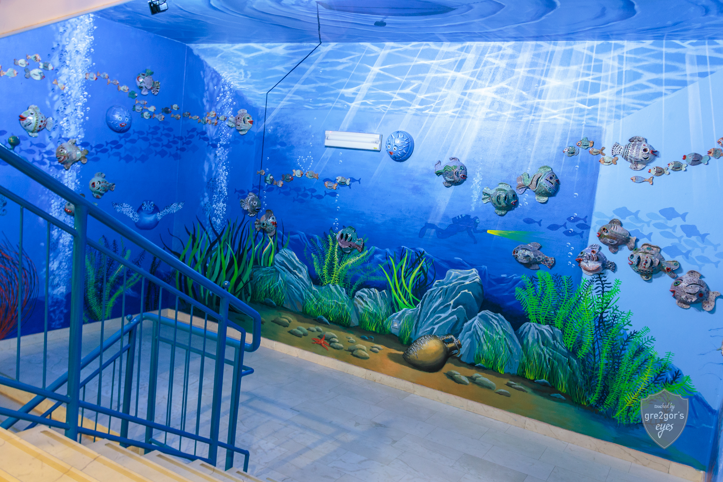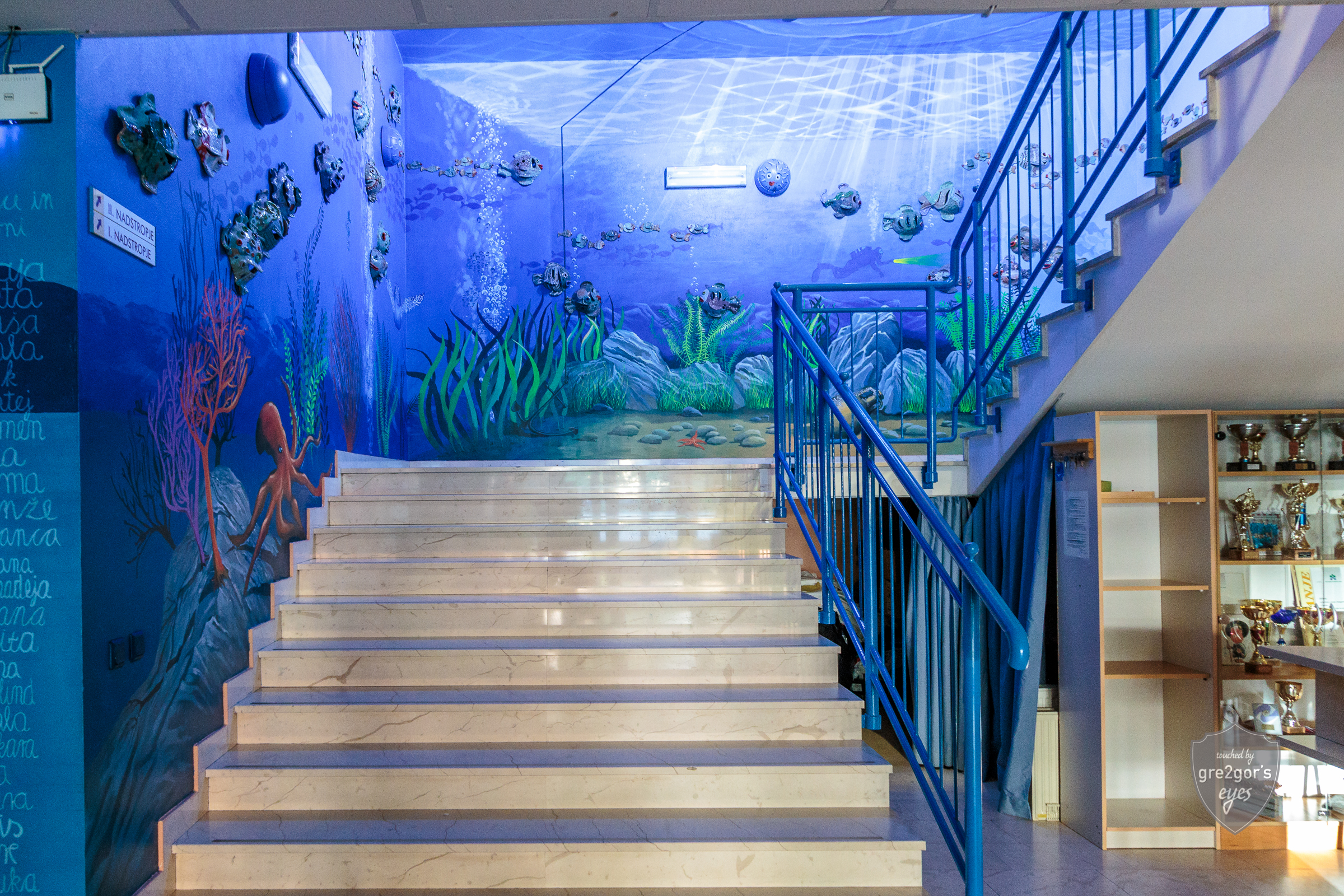 Naj bo dan še tako turoben, a ko vstopiš v predverje OŠ Tržič ti obraz hitro razpotegne v nasmeh. Preplavi te nek dober občutek. Pred teboj se pojavi morje.