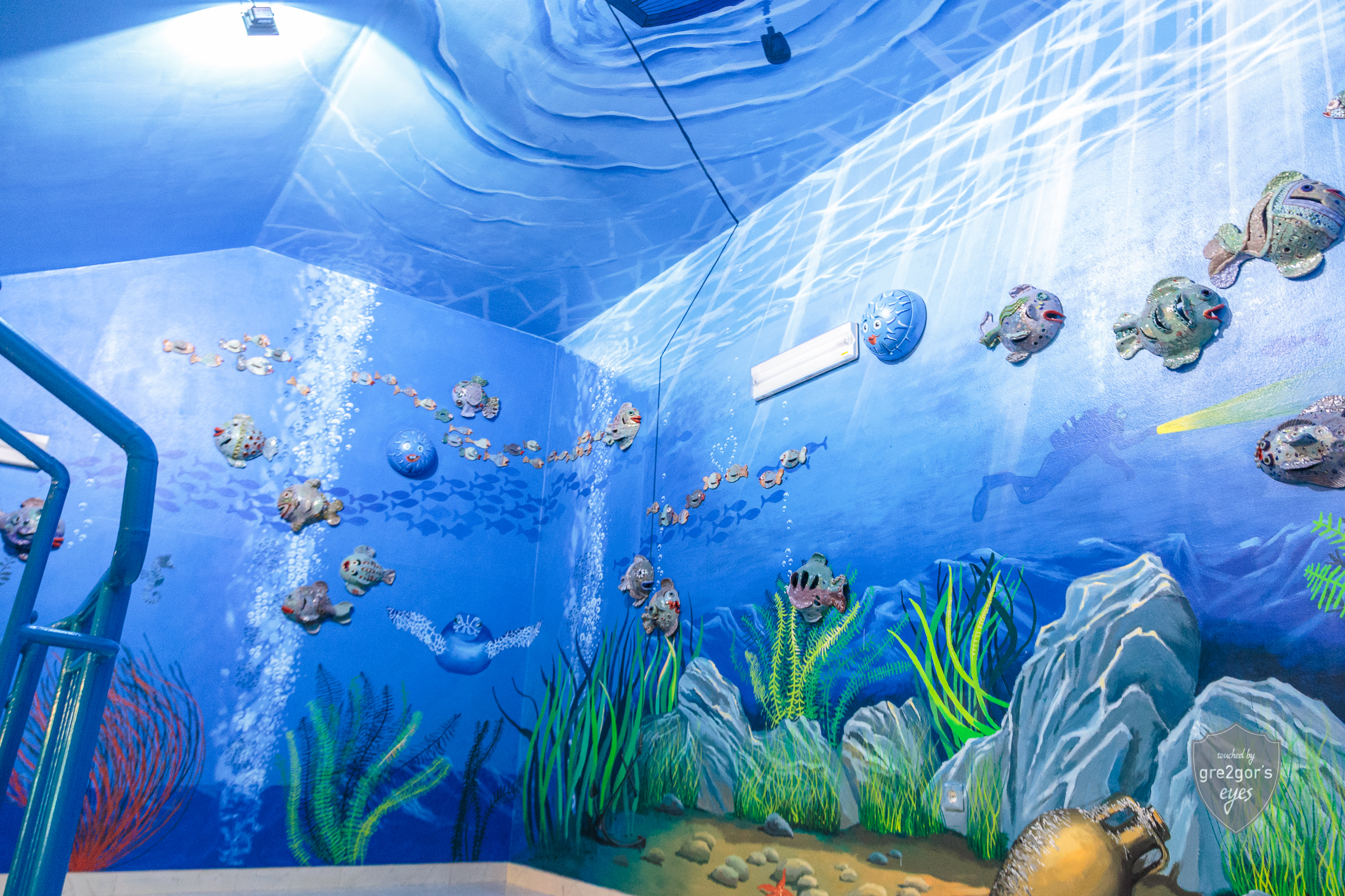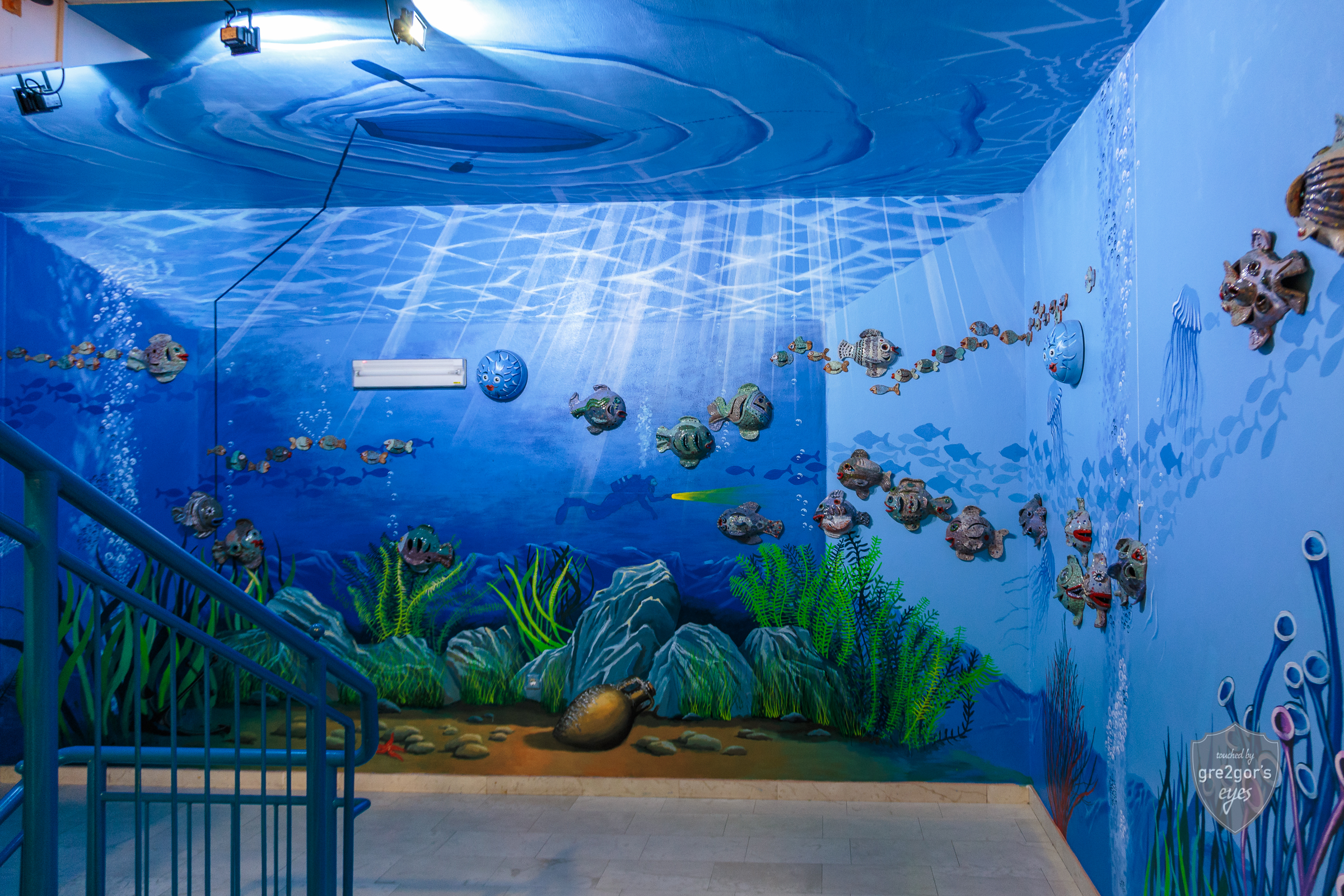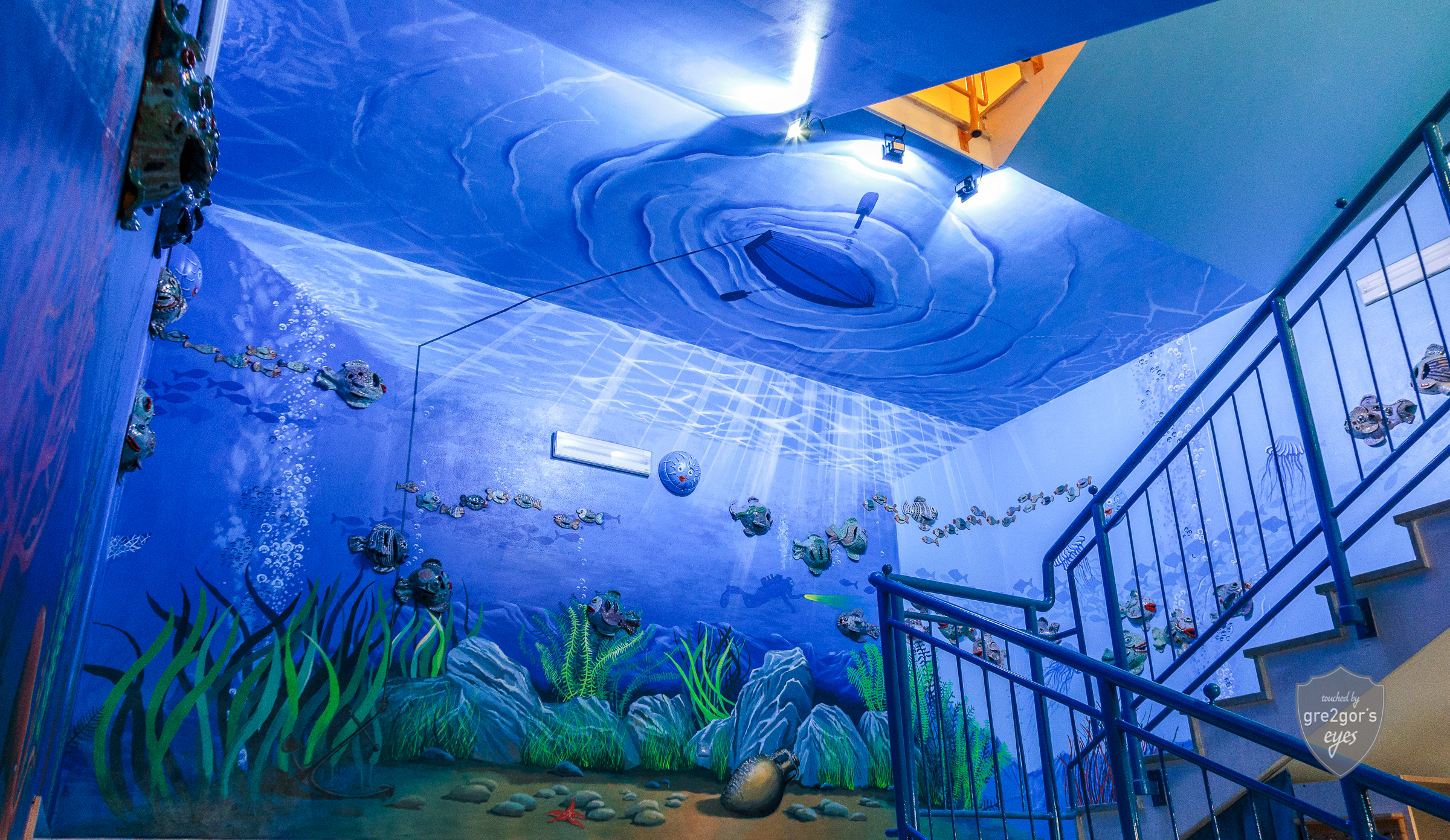 Dejansko na stopnišču vstopiš v podvodni svet, obkrožajo te ribe in ostala vodna flora in favna. Človek bi kar zajel zrak in izplaval na površje.